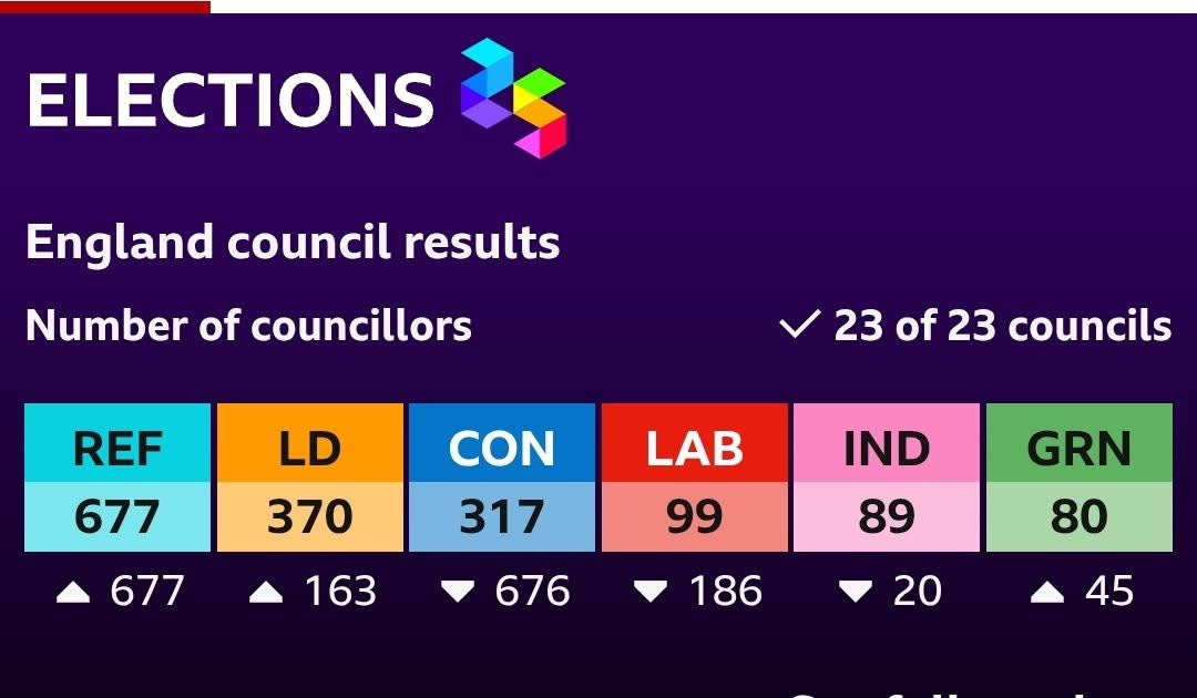 So in the UK we have just had our local elections. This is for council seats, the lower tier of our political system. Local councils can spend a lot of money, employ thousands of people, and make important local decisions. But they don’t control any of the big policies or key strategies, which are all determined by the party in power and MP votes in the Commons. Local council elections leave the vast Labour majority in the House of Commons still riding roughshod over any remaining semblance of sanity and freedom, but it’s the first major test of the popularity, or lack of it, of the Labour government.