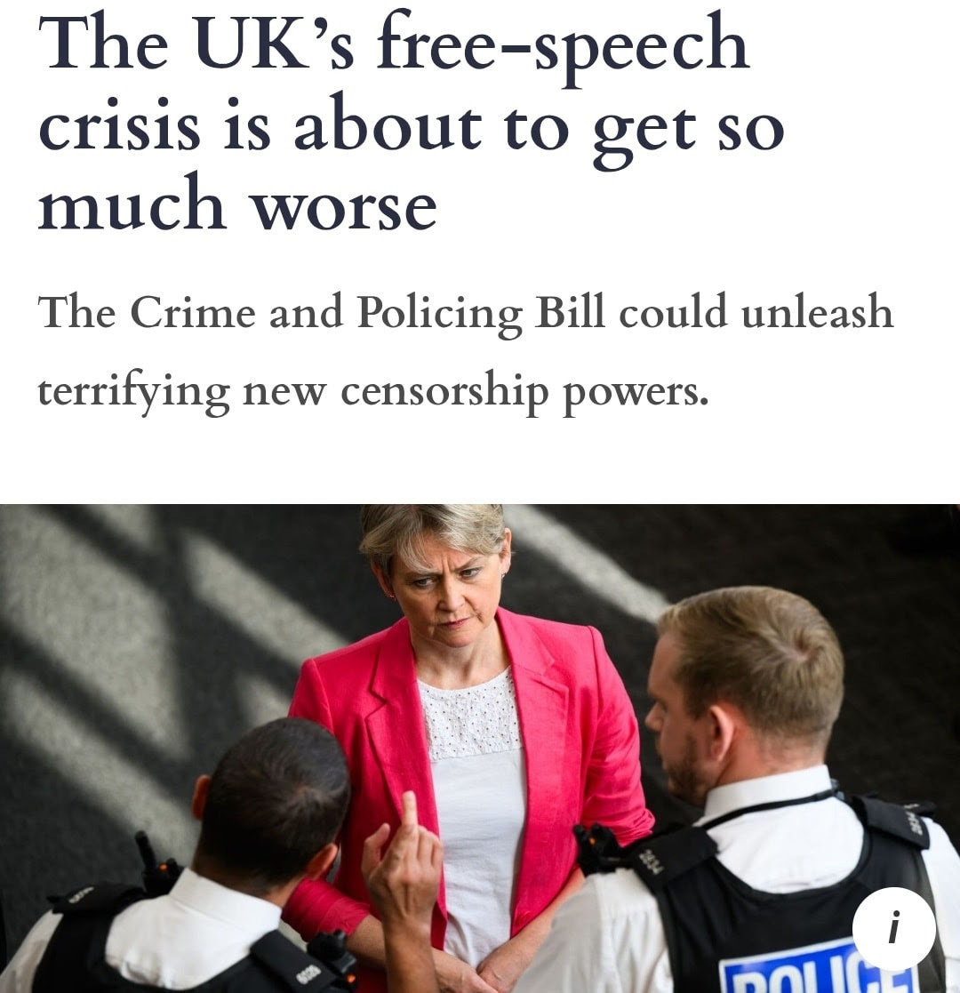 Now to another source, which has come to me via the excellent Mick Bolton at his substack. Let us look at the Crime and Policing Bill and just how INSANE the provisions of that are. As bad as the Online Harms Act is, it’s not the thing that creates absolute tyranny.